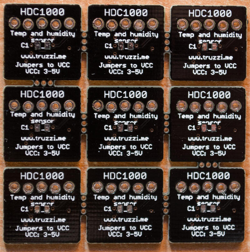 Some time ago I came across a new chip from TI, the HDC1000. It’s a temperature and humidity sensor with I2C interface and requires little to no additional components. It comes in an 8BGA package: we can all agree it’s pretty small.