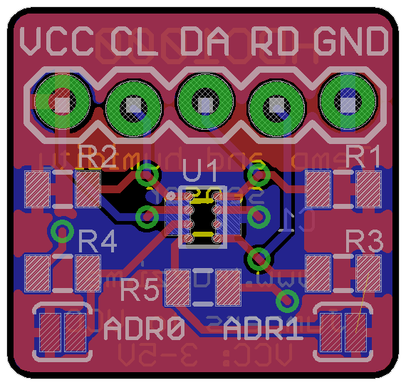 - I2C pull-ups to VCC for SDA, SCL and DRDYn. If you don’t want to use the latter, just don’t solder the resistor and leave it floating.